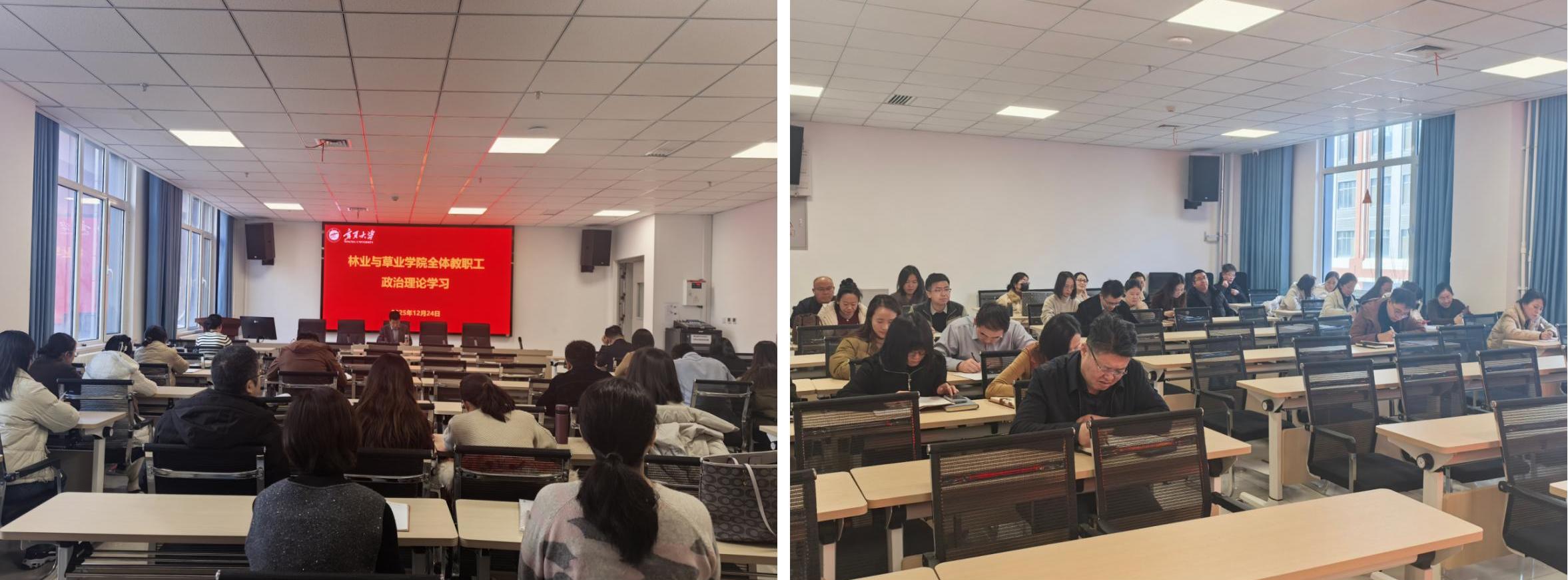 2025年12月24日,William希尔于新农科大楼223会议室召开全体教职工政治理论学习研讨会。全体教职工参加学习,学院党总支书记贺海明主持会议。