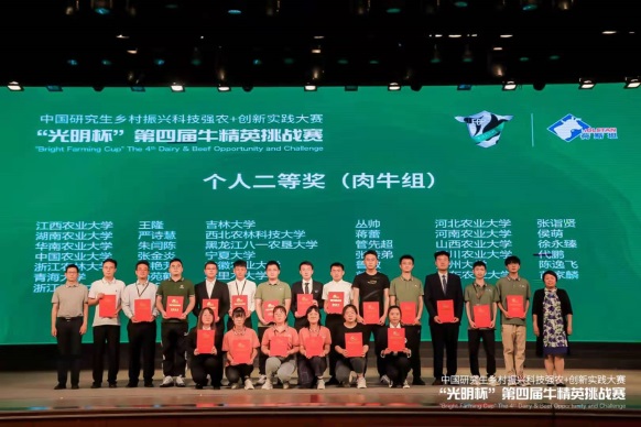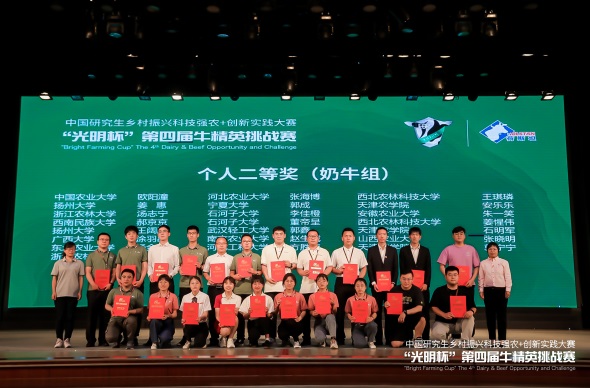 5月21-23日,由中国学位与研究生教育学会、中国科协青少年科技中心、全国农业专业学位研究生教育指导委员会共同主办,中国农业大学和西北农林科技大学联合承办的第四届农林高校“光明杯”牛精英挑战赛在陕西杨凌进行。本届比赛升级为中国研究生创新实践“乡村振兴科技强农+”主题赛事之一,是畜牧领域级别最高的比赛,共有来自全国41所高校62支队伍参加比赛。在将近3天的比赛中,我校参赛选手充分展示了专业能力、团队精神和良好的精神风貌。奶牛团队参赛选手郭成、王凤莲、马旭林、樊希雅获得奶牛组团队一等奖,郭成荣获个人二等奖;肉牛组参赛选手张转弟、王庆、李金转、杨博获得肉牛组团队二等奖,张转弟荣获个人二等奖。