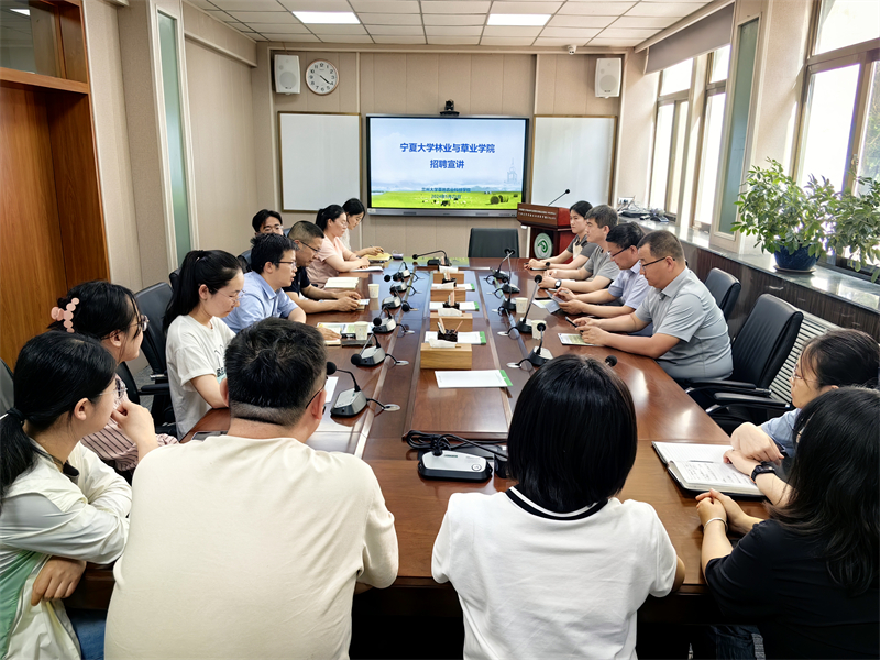 在甘肃农业大学草业学院交流座谈会及人才招聘宣讲会上,马红彬院长和伏兵哲副院长与甘肃农业大学草业学院党委书记黄振华、院长白小明等就学科建设、研究生培养、青年教师发展、科学研究及实验室管理等方面进行了深入交流。马红彬为甘肃农业大学草学和林学专业的博士生进行了宁夏回族自治区和williamhill威廉希尔人才引进政策宣讲和解读、介绍了学院基本情况和2024年林学和草学学科人才招聘需求,并和与会博士进行互动交流,回应了同学们关切问题。随后在白小明院长陪同下,马红彬和伏兵哲参观了甘肃农业大学草业学院科研平台和实验室。