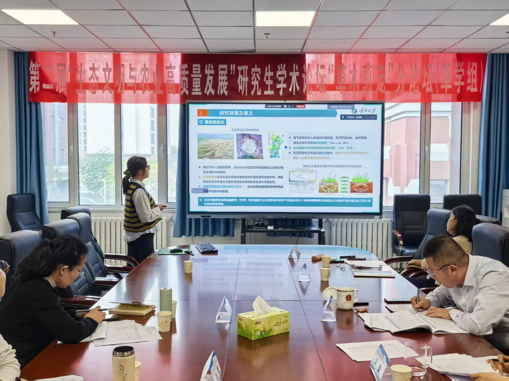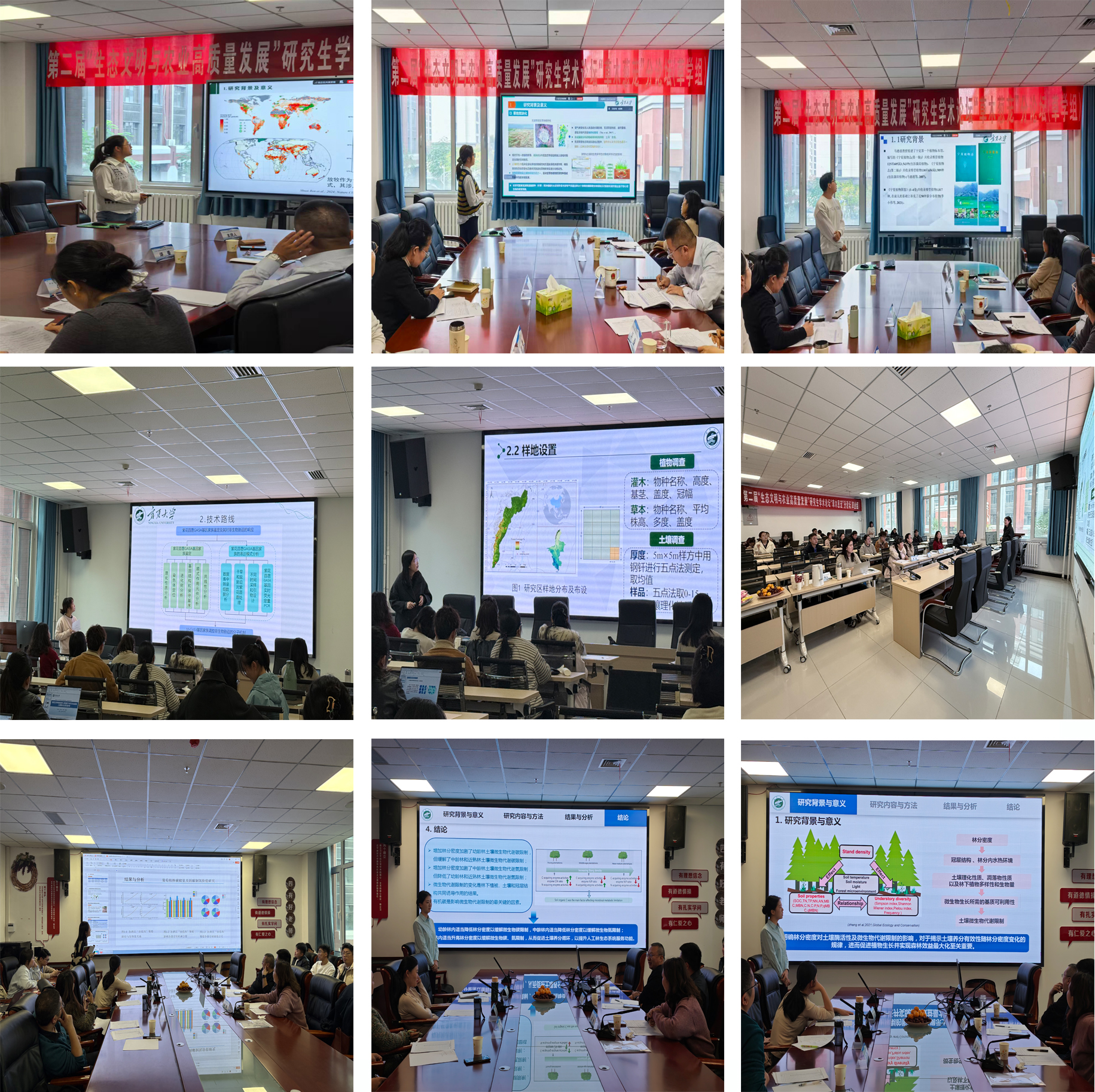 研究生主题报告分为草学、草业以及林业三个组别。70多名研究生们围绕各自领域的研究成果、创新思路展开深入分享,内容涵盖草地修复与适应性管理、牧草育种与良种繁育及林业可持续发展等多个关键方向,充分展现了学术交流的广度与深度。每个报告结束后,评委专家均结合自身丰富经验,从研究方法优化、学术逻辑完善等角度进行精准点评,既肯定了研究生们的学术闪光点,也针对性指出改进方向。分论坛还展示了63个学术墙报。
