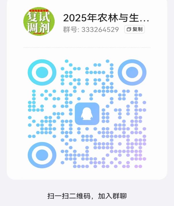 请各位调剂复试考生查阅williamhill威廉希尔研究生官网或William希尔官网有关复试的实施细则,并提前安排好行程,做好复试准备。在此期间,请各位考生保持联系方式畅通。(请扫描二维码加入农林与生态学部调剂复试QQ群)