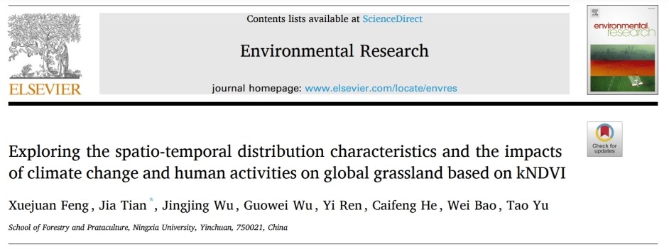 论文信息:Xuejuan Feng; Jia Tian; Jingjing Wu; Guowei Wu; Yi Ren; Caifeng He; Wei Bao; Tao Yu. Exploring the Spatio-temporal Distribution Characteristics and the Impacts of Climate Change and Human Activities on Global Grassland Based on kNDVI [J].Environmental Research, 2025, 279 (P2): 121884. DOI: https://doi.org/10.1016/j.envres.2025.121884.
